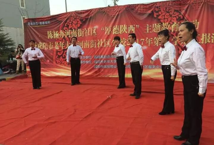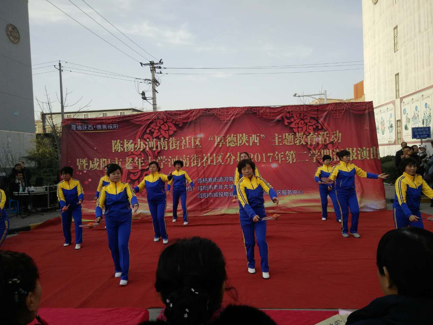 12月26日,城投物业联合河南街社区开展“厚德陕西”主题教育活动暨咸阳市老年大学河南街社区分校2017年第二学期汇报演出活动在河南街小区举行,来自河南街社区、市老年大学代表共计二百余人,为活动贡献出了精彩纷呈的文艺表演。
