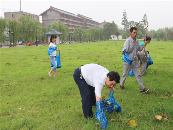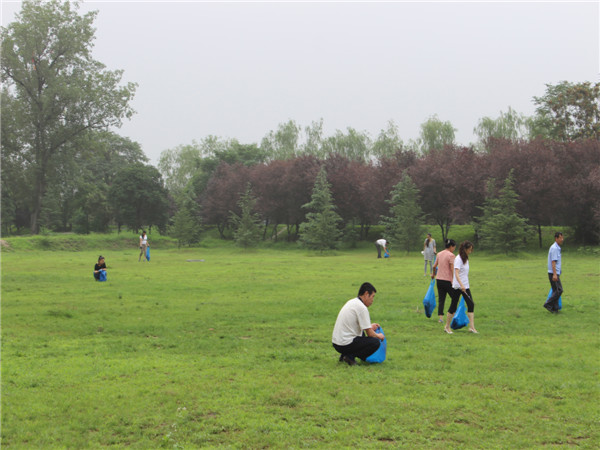 一大早,赵总亲自带队,魏总协助配合,公司工会、团支部积极协调,合理将河南街、安谷苑、统一大楼、陕西中医学院项目部以及机关人员分配于东西两侧草坪。在公司领导亲力亲为的感召下,全体员工干劲十足,经过近两个小时的清理,还原了景区绿化的整洁环境。