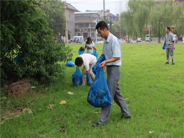 7月23日,由物业公司团支部组织,公司领导的大力支持下,公司全体人员来到统一大楼两侧的草坪内义务捡拾果皮垃圾,为保持咸阳湖景区优美整洁的环境奉献力量。
